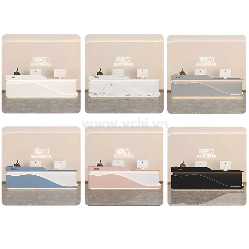 Quầy Lễ Tân YCHIRT107 có nhiều kích thước khác nhau và nhiều màu sắc để khách hàng quyết định. Bảng màu sắc được cập nhật thường xuyên đảm bảo bắt kịp xu hướng nội thất mới. Đội ngũ nhân viên tư vấn chuyên nghiệp của YCHI luôn sẵn sàng hỗ trợ khách hàng, đưa ra những lời khuyên hữu ích để bạn có sản phẩm ưng ý nhất. Liên hệ Zalo bên cạnh hoặc gọi trực tiếp Hotline 0906.919.068, YCHI luôn sẵn sàng giải đáp các câu hỏi của khách hàng.