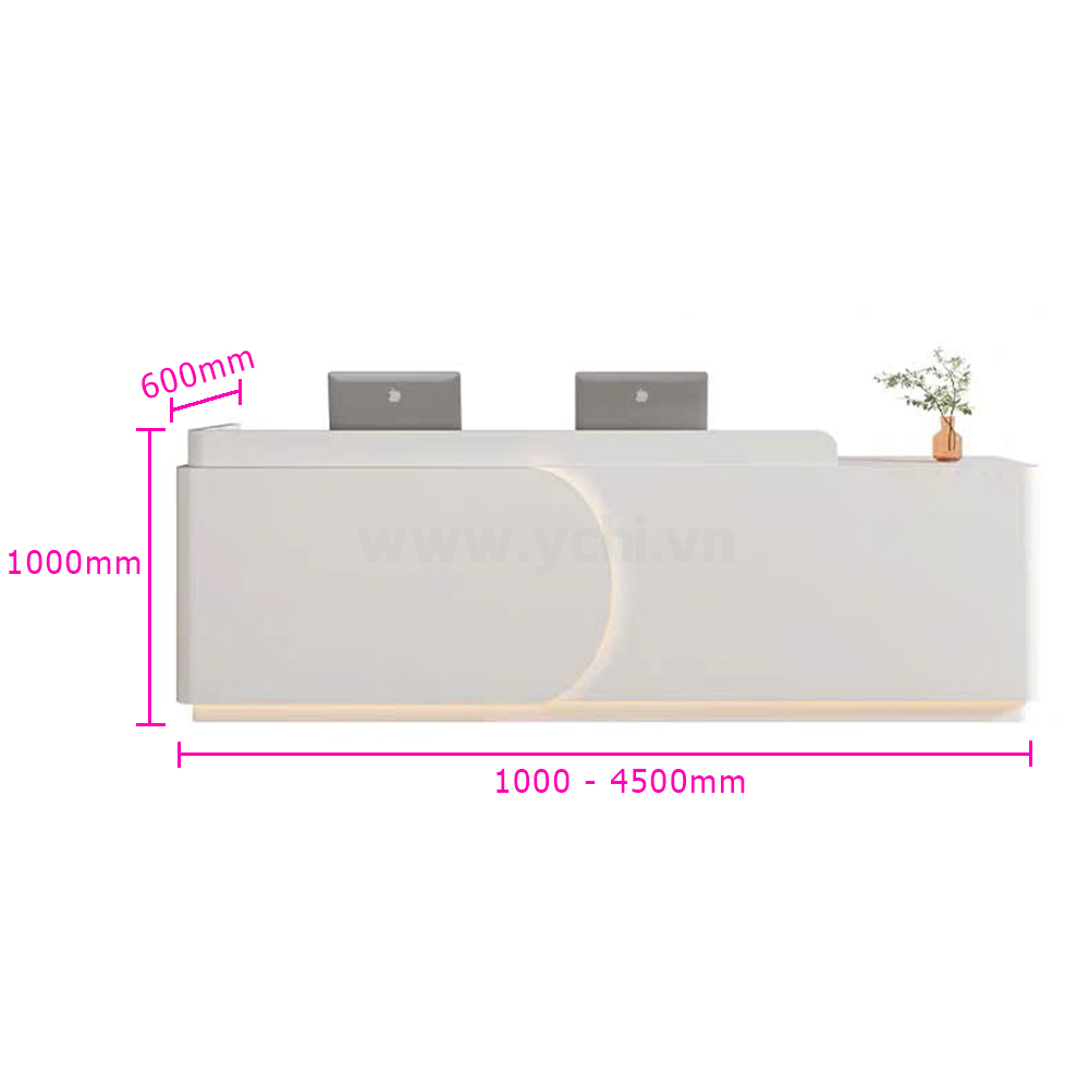 Quầy Lễ Tân YCHIRT108 có nhiều kích thước khác nhau và nhiều màu sắc để khách hàng quyết định. Bảng màu sắc được cập nhật thường xuyên đảm bảo bắt kịp xu hướng nội thất mới. Đội ngũ nhân viên tư vấn chuyên nghiệp của YCHI luôn sẵn sàng hỗ trợ khách hàng, đưa ra những lời khuyên hữu ích để bạn có sản phẩm ưng ý nhất. Liên hệ Zalo bên cạnh hoặc gọi trực tiếp Hotline 0906.919.068, YCHI luôn sẵn sàng giải đáp các câu hỏi của khách hàng.