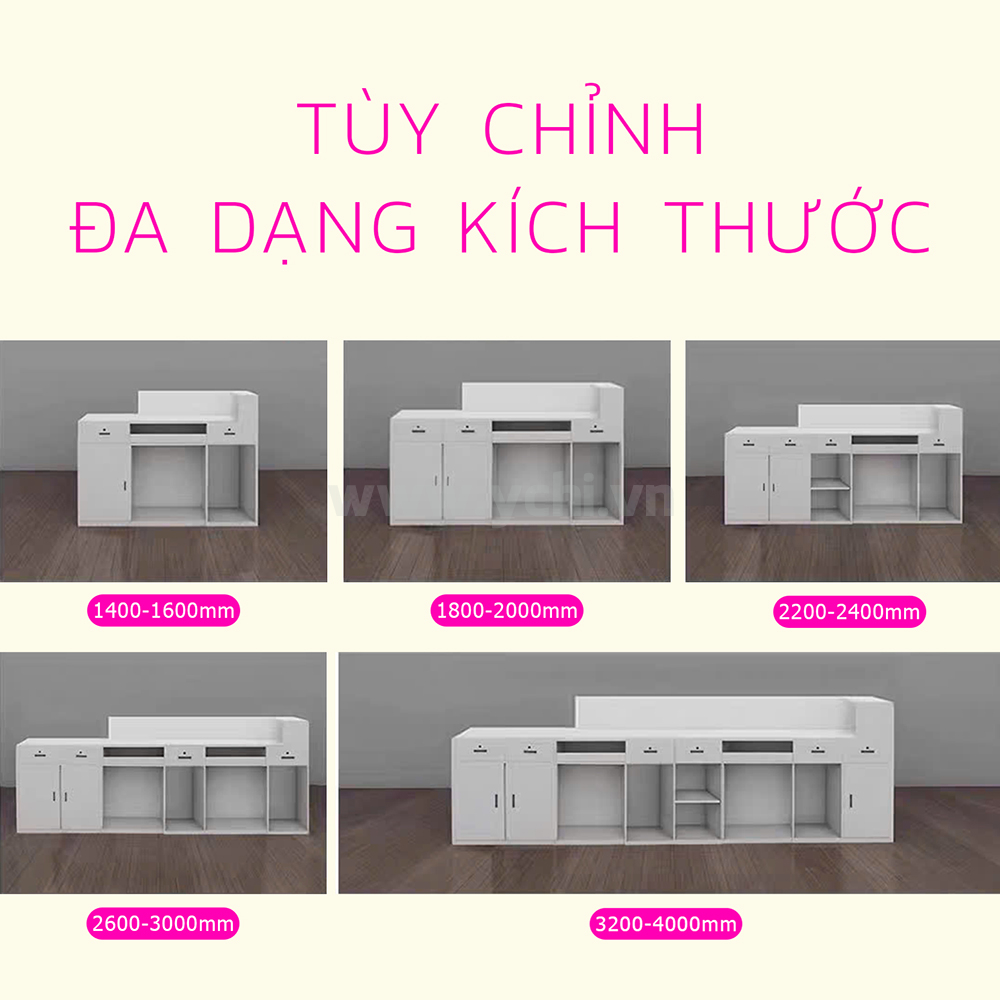 Kích thước: 2400x600x750-1000 (mm) (*Kích thước có thể thay đổi theo yêu cầu).