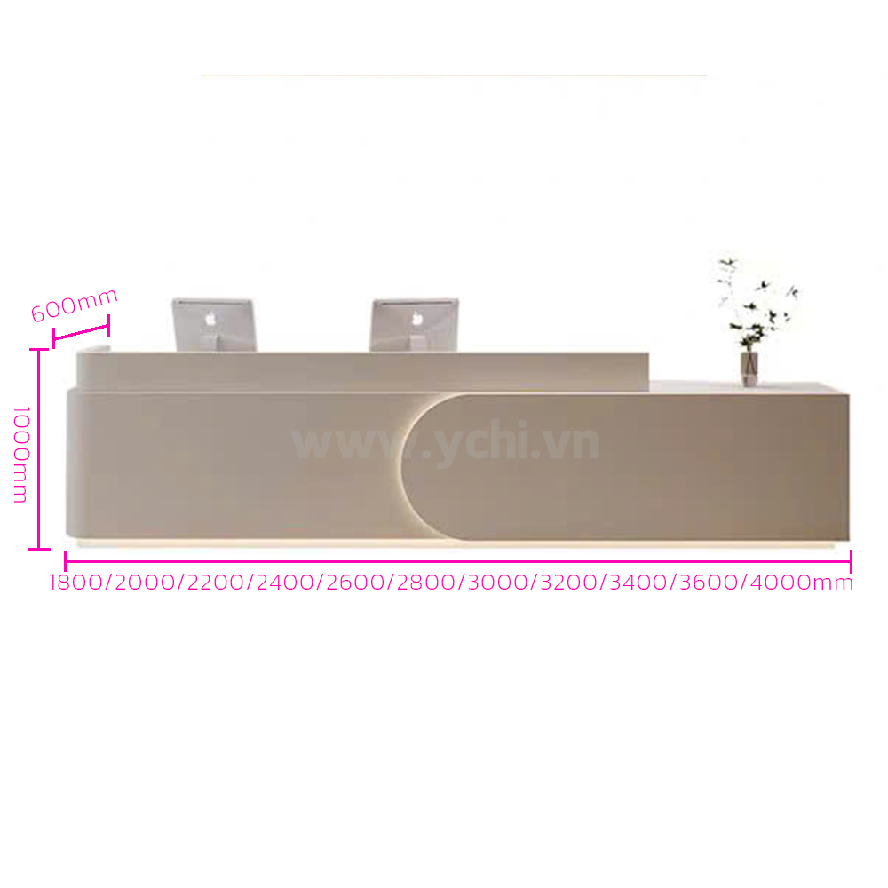 Quầy Lễ Tân YCHIRT122 có nhiều kích thước khác nhau và nhiều màu sắc để khách hàng quyết định. Bảng màu sắc được cập nhật thường xuyên đảm bảo bắt kịp xu hướng nội thất mới. Đội ngũ nhân viên tư vấn chuyên nghiệp của YCHI luôn sẵn sàng hỗ trợ khách hàng, đưa ra những lời khuyên hữu ích để bạn có sản phẩm ưng ý nhất. Liên hệ Zalo bên cạnh hoặc gọi trực tiếp Hotline 0906.919.068, YCHI luôn sẵn sàng giải đáp các câu hỏi của khách hàng.