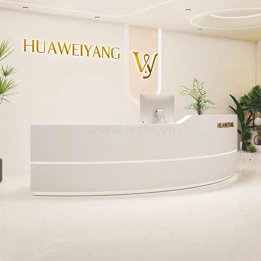 Tận dụng sức mạnh của ngôn ngữ thiết kế "vị lai" và sự tinh giản, Quầy Lễ Tân YCHIRT129 chính là điểm chạm thị giác hoàn hảo, giúp biến không gian sảnh chờ trở thành một tác phẩm nghệ thuật đương đại. Quầy Lễ Tân YCHIRT129 phá vỡ mọi khuôn mẫu thô cứng bằng sự kết hợp táo bạo giữa các khối bo tròn mềm mại và hệ thống nan gỗ sọc dọc tinh xảo, tạo nên một nhịp điệu kiến trúc vừa vững chãi vừa thanh thoát. Sự đan xen giữa bề mặt đá Marble sang trọng cùng những tông màu xu hướng như xanh rêu thẳm, đen huyền bí hay xám xi măng giúp quầy dễ dàng thích nghi với nhiều phong cách decor từ sang trọng đến phá cách. Đặc biệt, dải đèn LED âm chạy dọc theo đường cong của quầy không chỉ đóng vai trò chiếu sáng mà còn tạo hiệu ứng hắt bóng đầy mê hoặc, tôn vinh logo thương hiệu một cách kiêu hãnh và rực rỡ. Với cấu trúc mặt bàn kép thông minh, mẫu quầy này tối ưu hóa tối đa hiệu suất làm việc, giúp nhân viên thao tác chuyên nghiệp trong một không gian riêng tư nhưng vẫn đầy thân thiện. Đây không đơn thuần là một món đồ nội thất, mà là bước đi chiến lược để nâng tầm giá trị thương hiệu và ghi điểm tuyệt đối trong lòng khách hàng ngay từ cái nhìn đầu tiên.