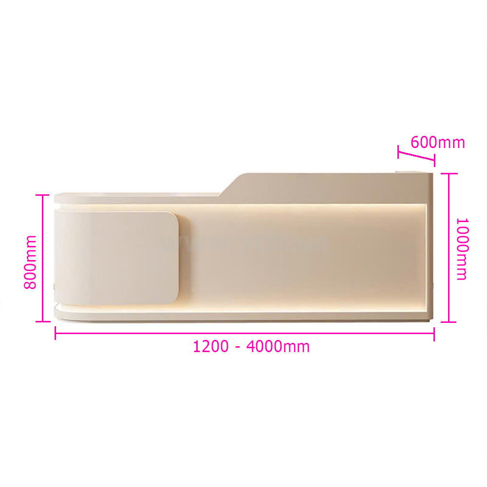 Kích thước: 2400x600x750-1000 (mm) (*Kích thước có thể thay đổi theo yêu cầu).