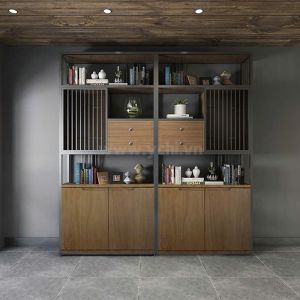 Đặc điểm: Thường là khung sắt sơn tĩnh điện kết hợp với mặt kệ gỗ hoặc kính.