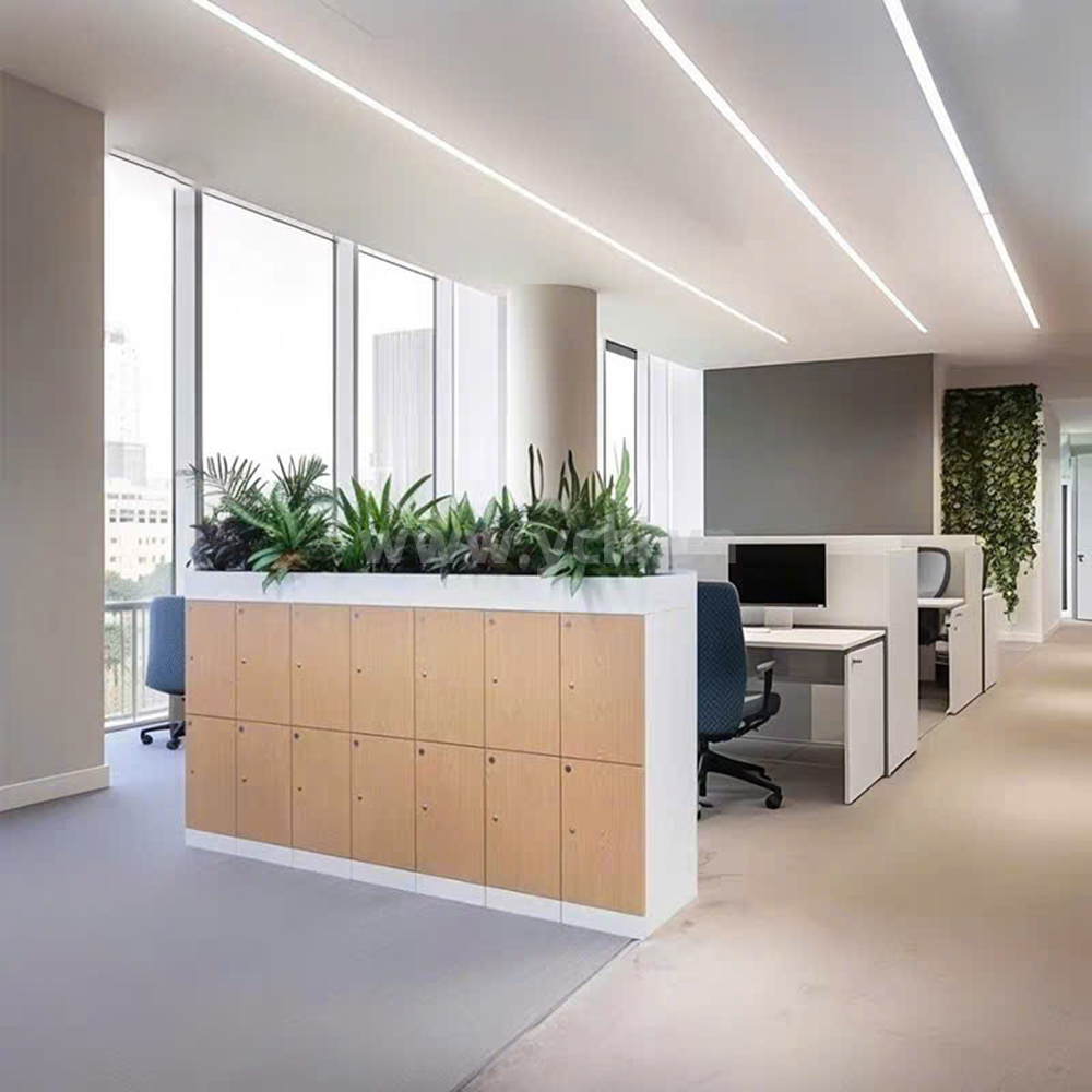 Trong các thiết kế văn phòng mở, việc sử dụng tường gạch hay vách thạch cao thường gây cảm giác bí bách. Tủ-kệ chậu cây YCHI đóng vai trò là một vách ngăn ước lệ. Nó vừa đủ cao để tạo sự riêng tư giữa các phòng ban, nhưng vẫn đủ thông thoáng để ánh sáng và gió có thể lưu thông xuyên suốt căn phòng.