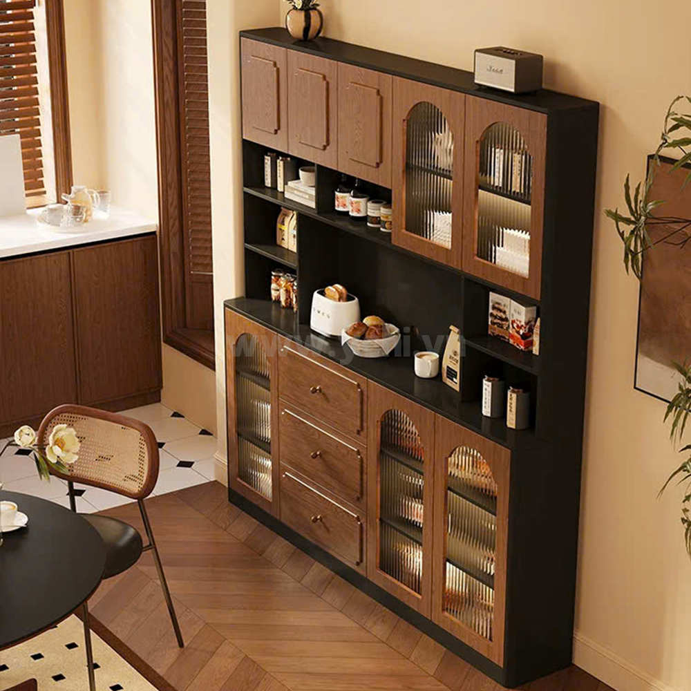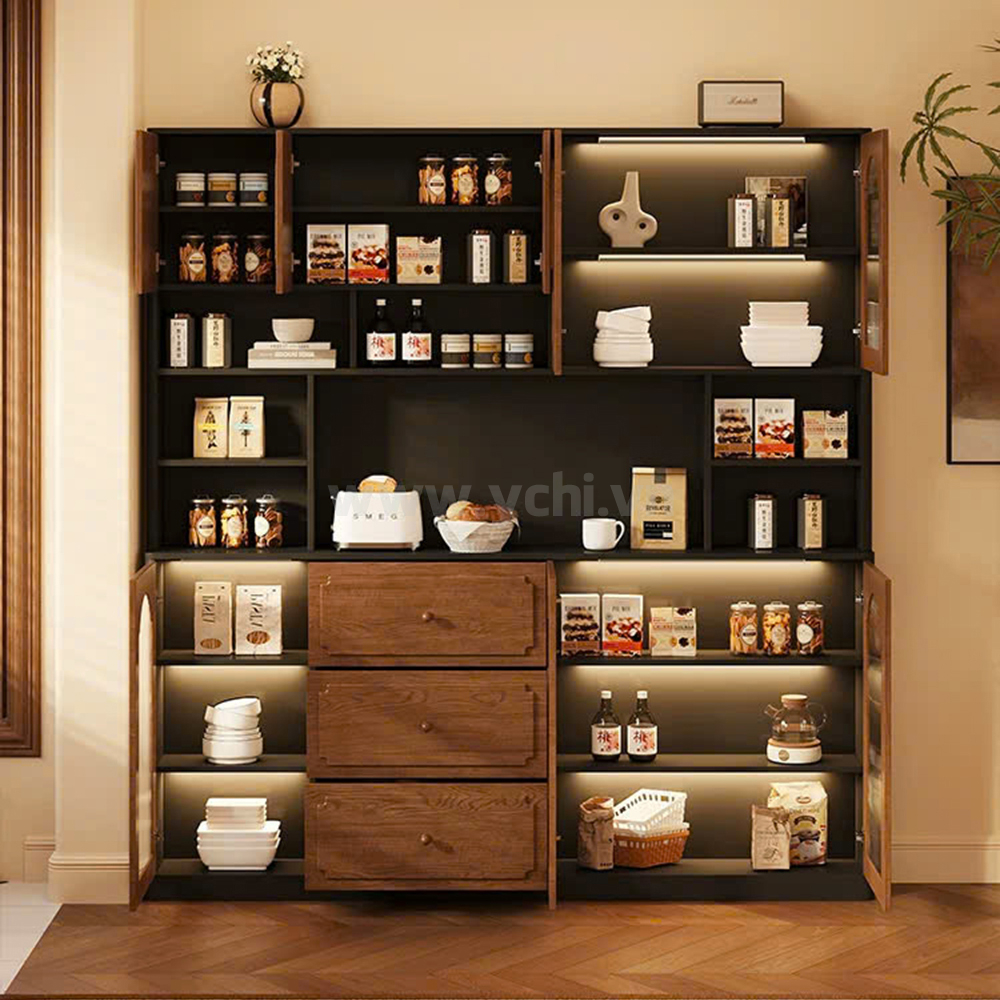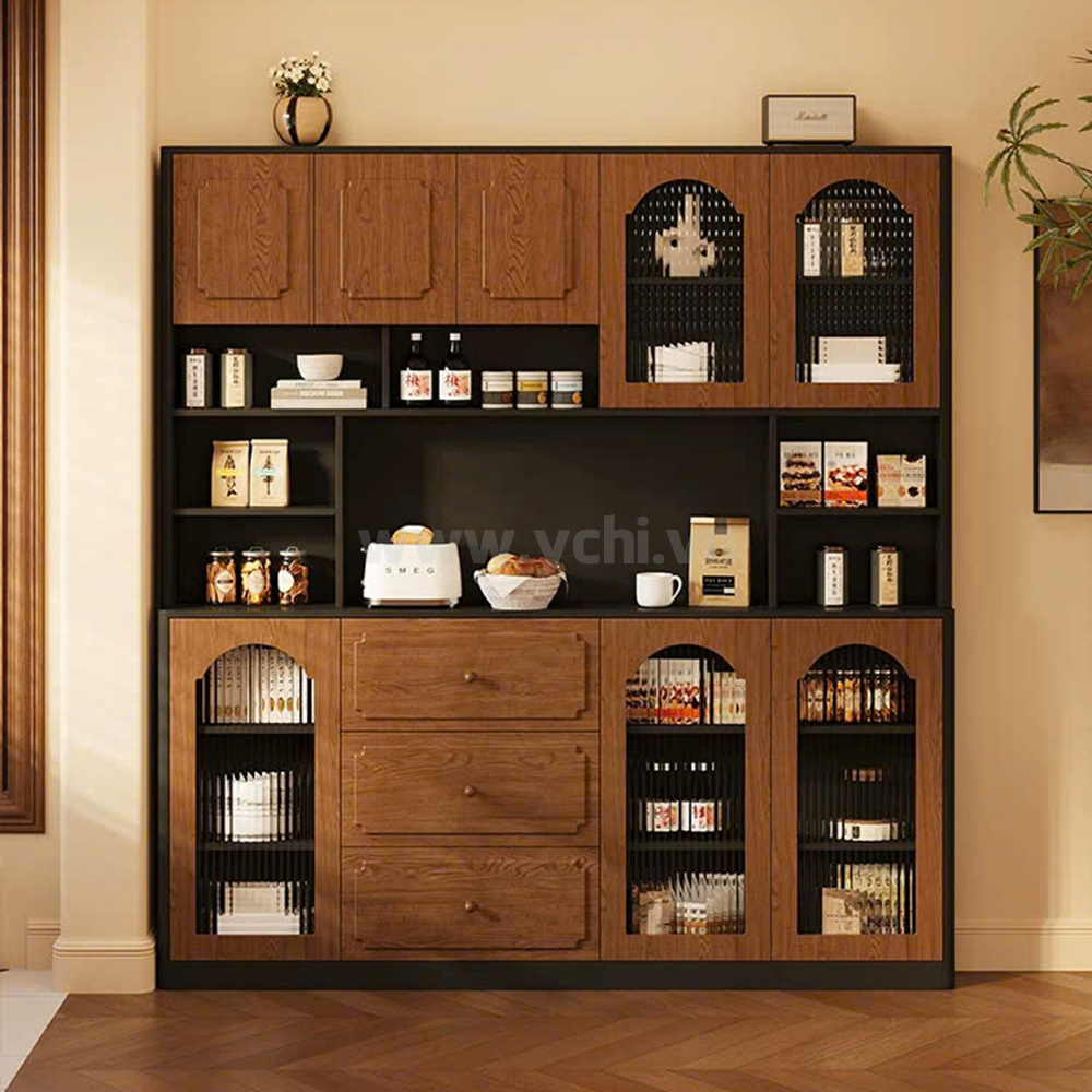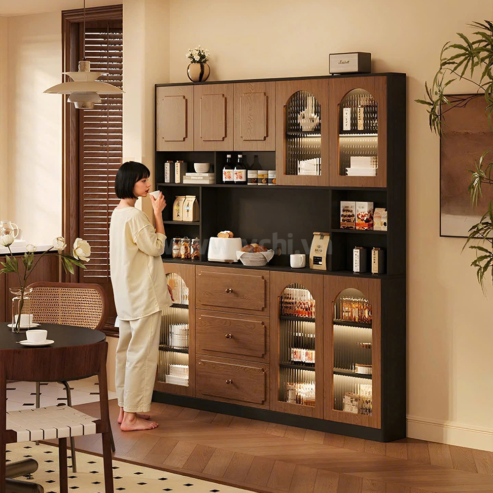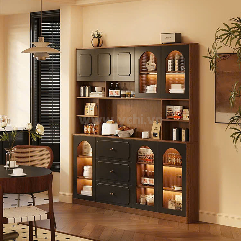 Khơi nguồn cảm hứng cho những bữa tiệc gia đình ấm cúng với mẫu Tủ Phòng Ăn Vân Gỗ Tự Nhiên YCHITA013 – bản giao hưởng giữa nét đẹp mộc mạc và tư duy thiết kế đa năng. Được chế tác từ cốt gỗ công nghiệp MDF phủ Melamine hoặc Plywood phủ Veneer thượng hạng, sản phẩm trải qua quy trình sơn PU tỉ mỉ, tạo nên bề mặt mịn màng, chống ẩm mốc và tôn vinh trọn vẹn từng thớ gỗ tự nhiên. Chiếc tủ không chỉ là nơi lưu trữ mà còn là một trạm pha chế (Coffee Station) chuyên nghiệp ngay tại gia. Điểm nhấn độc đáo nằm ở hệ tủ kính sọc mờ tinh tế, kết hợp khéo léo cùng dải đèn LED âm tủ, mang lại hiệu ứng ánh sáng sang trọng cho các bộ sưu tập ly tách. Với không gian trung tâm rộng rãi dành cho máy pha cà phê và các khoang chứa đồ được phân tách khoa học bằng hệ ngăn kéo tay nắm kim loại thanh mảnh, mọi vật dụng từ đồ gia dụng đến thực phẩm khô đều được sắp đặt gọn gàng, ngăn nắp. Sự kết hợp hoàn hảo giữa tông màu gỗ trầm ấm và khung đen thời thượng giúp mẫu tủ này dễ dàng hòa nhập vào mọi phong cách nội thất từ Modern đến Mid-century.