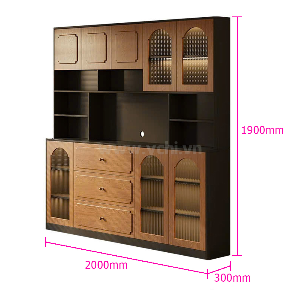 Tủ Phòng Ăn YCHITA013 là sự kết hợp hoàn hảo giữa thiết kế hiện đại, sang trọng và công năng sử dụng tối ưu, làm nổi bật không gian sống đẳng cấp. Sản phẩm được chế tác từ chất liệu gỗ công nghiệp MDF phủ Melamine cao cấp hoặc Plywood phủ Veneer, kết hợp với công nghệ sơn PU giúp bảo vệ bề mặt, chống trầy xước và tăng tính thẩm mỹ. Sản phẩm nổi bật với thiết kế cánh tủ được trang trí bởi các đường nét đẹp mắt, tạo điểm nhấn nghệ thuật và sự tinh tế cho không gian phòng ăn. Tủ được thiết kế gồm nhiều khoang lưu trữ linh hoạt: các ngăn mở dùng để trưng bày ly tách, chai rượu vang và phụ kiện; phần tủ rượu với các kệ nhỏ chuyên dụng giúp sắp xếp rượu ngăn ngập và tiện lợi. Có thể có các hệ thống đèn LED chiếu sáng bên trong tủ không chỉ làm nổi bật sản phẩm trưng bày mà còn tạo không gian ấm cúng, sang trọng. Chất liệu gỗ MDF/Plywood đảm bảo độ bền cao, chống ẩm mốc và mối mọt. Lớp phủ Melamine/Veneer cùng sơn PU giúp tủ giữ được vẻ đẹp bóng đẹp theo thời gian. Mẫu tủ này không chỉ là một sản phẩm nội thất hữu dụng mà còn là một tác phẩm nghệ thuật, mang đến sự sang trọng và đẳng cấp cho ngôi nhà của bạn.