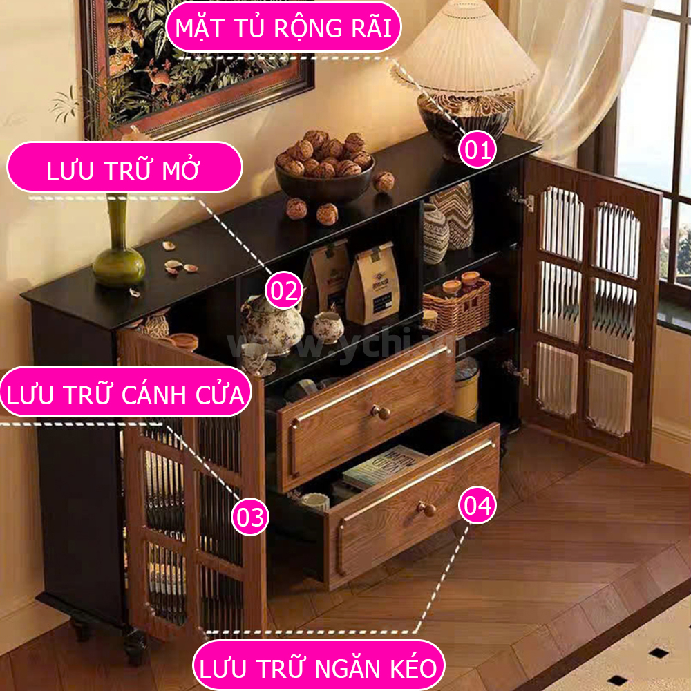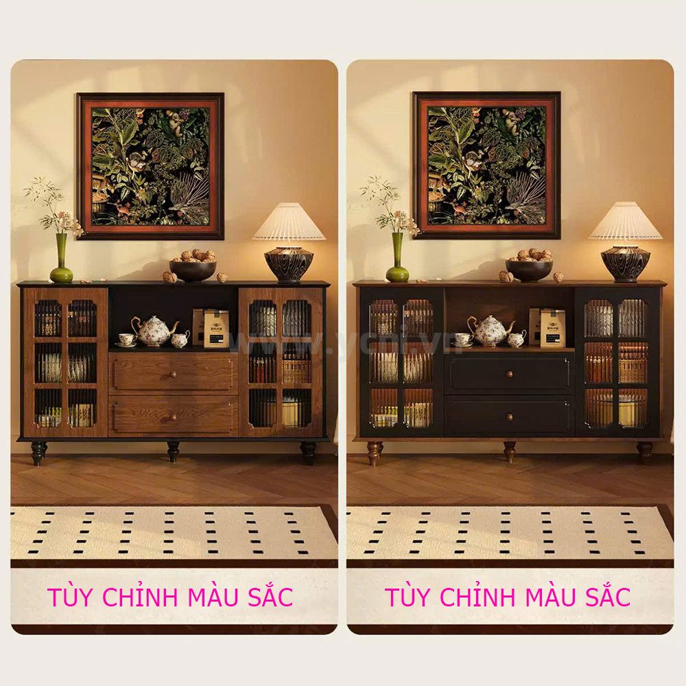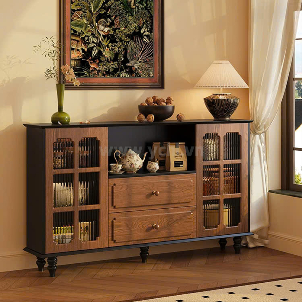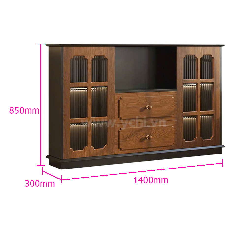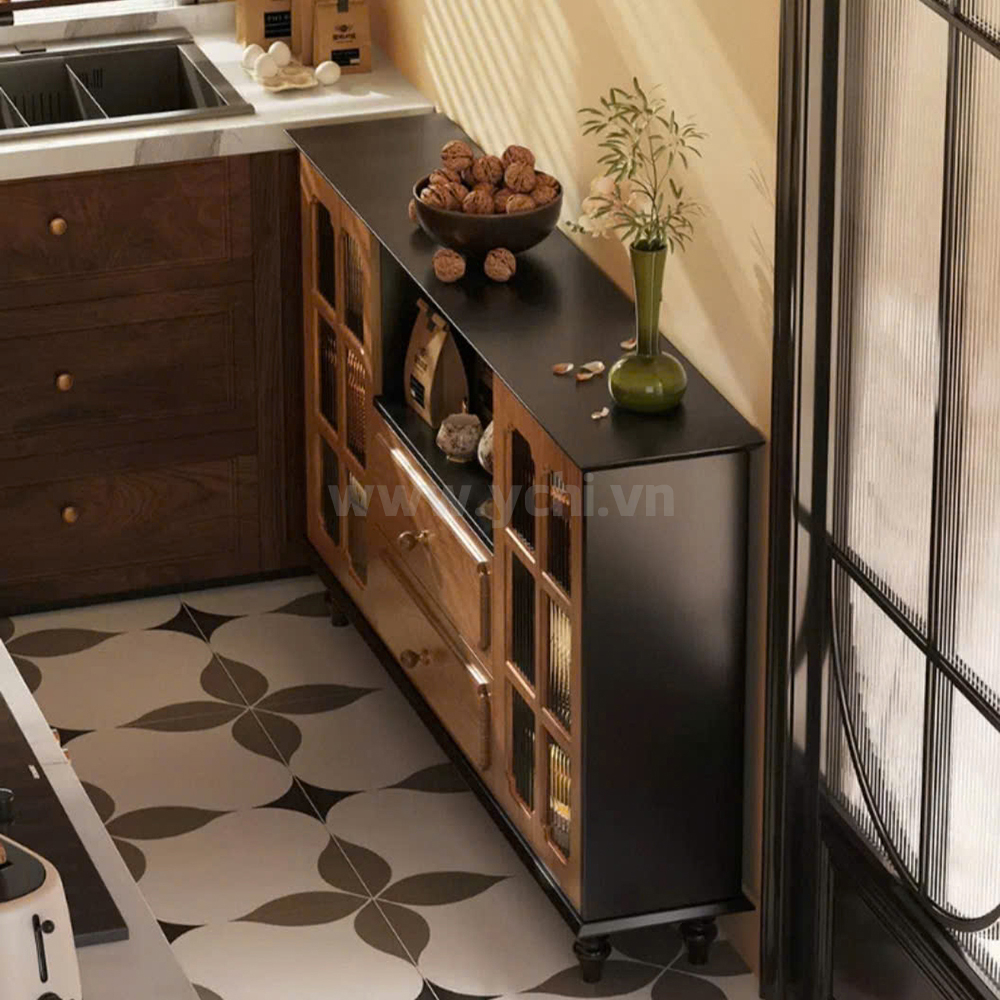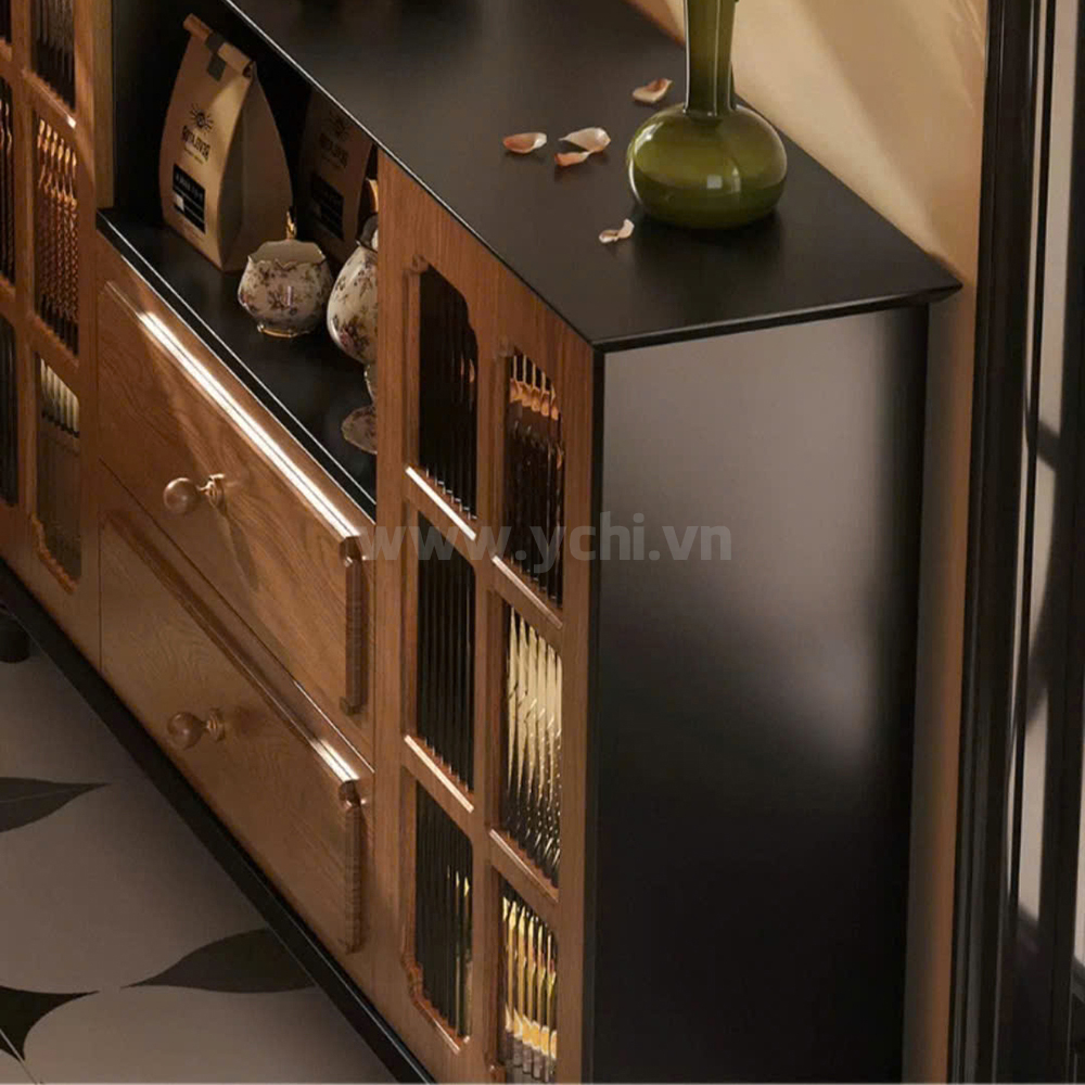 Đánh thức vẻ đẹp tinh tế cho không gian bếp với Tủ Phòng Ăn Vân Gỗ Tự Nhiên YCHITA014 – sự kết hợp đầy cảm hứng giữa tư duy thẩm mỹ hiện đại và công năng lưu trữ hoàn hảo. Được chế tác từ cốt gỗ MDF phủ Melamine hoặc Plywood phủ Veneer thượng hạng, sản phẩm khoác lên mình lớp sơn PU mịn mượt, giúp lưu giữ vẹn nguyên nét mộc mạc của vân gỗ tự nhiên mà vẫn đảm bảo khả năng chống ẩm vượt trội. Thiết kế gây ấn tượng bởi sự phân tầng thông minh: hệ tủ kính khung nhôm phía trên tích hợp đèn LED rực rỡ, biến những bộ sưu tập ly tách và rượu vang thành tâm điểm đầy nghệ thuật. Khu vực trung tâm phẳng mịn là "trạm năng lượng" lý tưởng cho máy pha cà phê hay các thiết bị điện gia dụng. Phía dưới, hệ thống ngăn kéo mượt mà cùng khoang chứa đồ rộng rãi giúp mọi vật dụng bếp luôn nằm trong tầm tay nhưng vẫn đảm bảo sự gọn gàng, kín đáo. Với phối màu gỗ trầm ấm điểm xuyết sắc đen huyền bí, mẫu tủ này không chỉ tối ưu diện tích mà còn là tuyên ngôn về phong cách sống đẳng cấp của gia chủ.