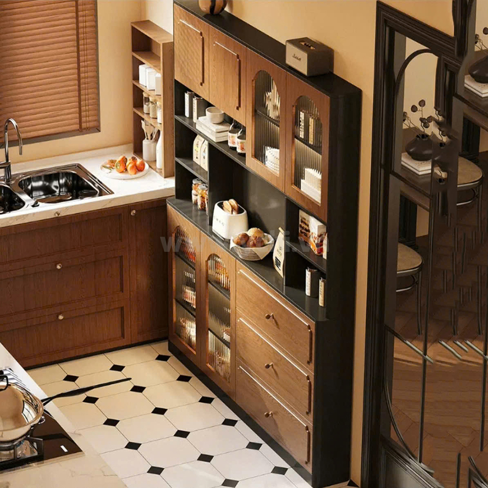 Lấy cảm hứng từ sự tinh giản của phong cách nội thất Bắc Âu, Tủ Phòng Ăn Vân Gỗ Tự Nhiên YCHITA015 mang đến một diện mạo thanh thoát và nhã nhặn cho tổ ấm của bạn. Sản phẩm được hoàn thiện từ cốt gỗ MDF phủ Melamine hoặc Plywood phủ Veneer chống ẩm, kết hợp lớp sơn PU cao cấp giúp bề mặt bền bỉ, hạn chế tối đa trầy xước và giữ trọn sắc gỗ tươi sáng. Cấu trúc tủ là một sự sắp đặt thông minh giữa các khoang lưu trữ đa dạng. Phía trên là hệ kệ mở trang nhã, nơi gia chủ có thể tự do bày trí những chai rượu vang hay bộ sưu tập gốm sứ yêu thích dưới ánh sáng lung linh của dải đèn LED ẩn. Khu vực mặt bàn gỗ phẳng phiu trở thành một góc pha chế mini lý tưởng cho máy cà phê hoặc ấm trà. Điểm nhấn tinh tế nằm ở hệ ngăn kéo mượt mà và các cánh tủ đóng kín bên dưới với tay nắm tròn tối giản, giúp "giấu đi" những vật dụng bếp lỉnh kỉnh một cách khéo léo. Sự kết hợp giữa chân gỗ cao mảnh mai và kiểu dáng vuông vức hiện đại không chỉ tối ưu công năng mà còn kiến tạo một không gian sống đầy cảm hứng và ngăn nắp.