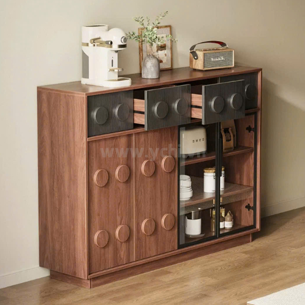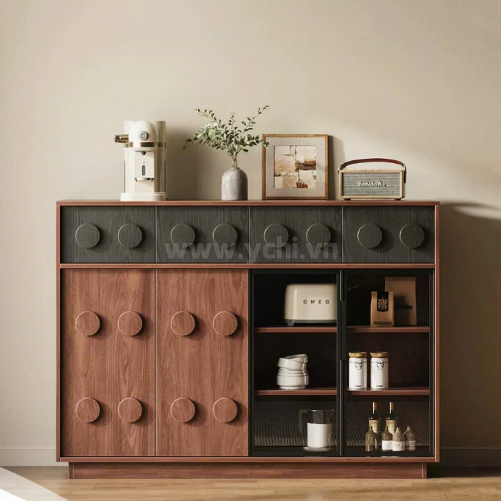 Tủ Phòng Ăn YCHITA039 là sự kết hợp hoàn hảo giữa thiết kế hiện đại, sang trọng và công năng sử dụng tối ưu, làm nổi bật không gian sống đẳng cấp. Sản phẩm được chế tác từ chất liệu gỗ công nghiệp MDF phủ Melamine cao cấp hoặc Plywood phủ Veneer, kết hợp với công nghệ sơn PU giúp bảo vệ bề mặt, chống trầy xước và tăng tính thẩm mỹ. Sản phẩm nổi bật với thiết kế cánh tủ được trang trí bởi các đường nét đẹp mắt, tạo điểm nhấn nghệ thuật và sự tinh tế cho không gian phòng ăn. Tủ được thiết kế gồm nhiều khoang lưu trữ linh hoạt: các ngăn mở dùng để trưng bày ly tách, chai rượu vang và phụ kiện; phần tủ rượu với các kệ nhỏ chuyên dụng giúp sắp xếp rượu ngăn ngập và tiện lợi. Có thể có các hệ thống đèn LED chiếu sáng bên trong tủ không chỉ làm nổi bật sản phẩm trưng bày mà còn tạo không gian ấm cúng, sang trọng. Chất liệu gỗ MDF/Plywood đảm bảo độ bền cao, chống ẩm mốc và mối mọt. Lớp phủ Melamine/Veneer cùng sơn PU giúp tủ giữ được vẻ đẹp bóng đẹp theo thời gian. Mẫu tủ này không chỉ là một sản phẩm nội thất hữu dụng mà còn là một tác phẩm nghệ thuật, mang đến sự sang trọng và đẳng cấp cho ngôi nhà của bạn.