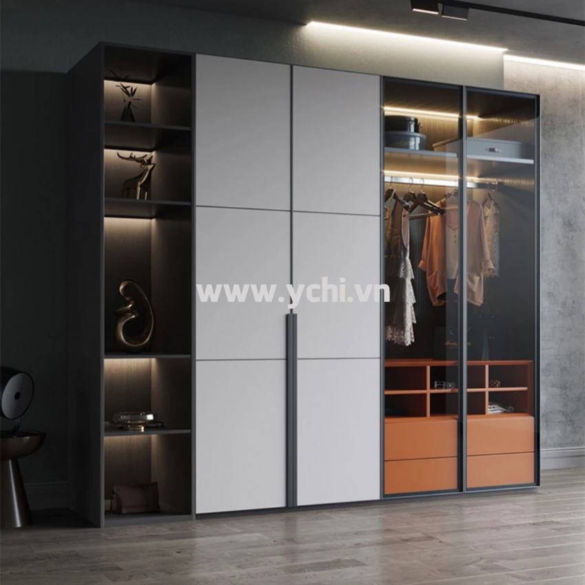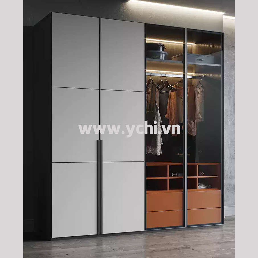 Bộ Tủ Quần Áo YCHIWB002 bằng gỗ MDF thiết kế sang trọng là lựa chọn hàng đầu dành cho các gia đình có nhu cầu lưu trữ quần áo lớn. Tủ quần áo bằng gỗ này có thiết kế cánh cửa tiện lợi, tiết kiệm được nhiều diện tích sử dụng. Sản phẩm được làm bằng gỗ công nghiệp chống ẩm cao cấp, kết cấu chắc chắn, chịu được lực tốt, bền đẹp theo thời gian. Đặc biệt tủ có nhiều biến thể với kích thước khác nhau để phù hợp với nhiều không gian của người sử dụng.