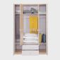 Tủ áo có kích thước không quá lớn nhưng vẫn đáp ứng tốt nhu cầu lưu trữ cho người dùng. Tủ áo gồm nhiều ngăn chứa, được trang bị suốt treo tiện dụng. Tủ không có chân mà bám sát sàn nên đảm bảo độ chịu lực tốt, khách hàng có thể yên tâm sử dụng.