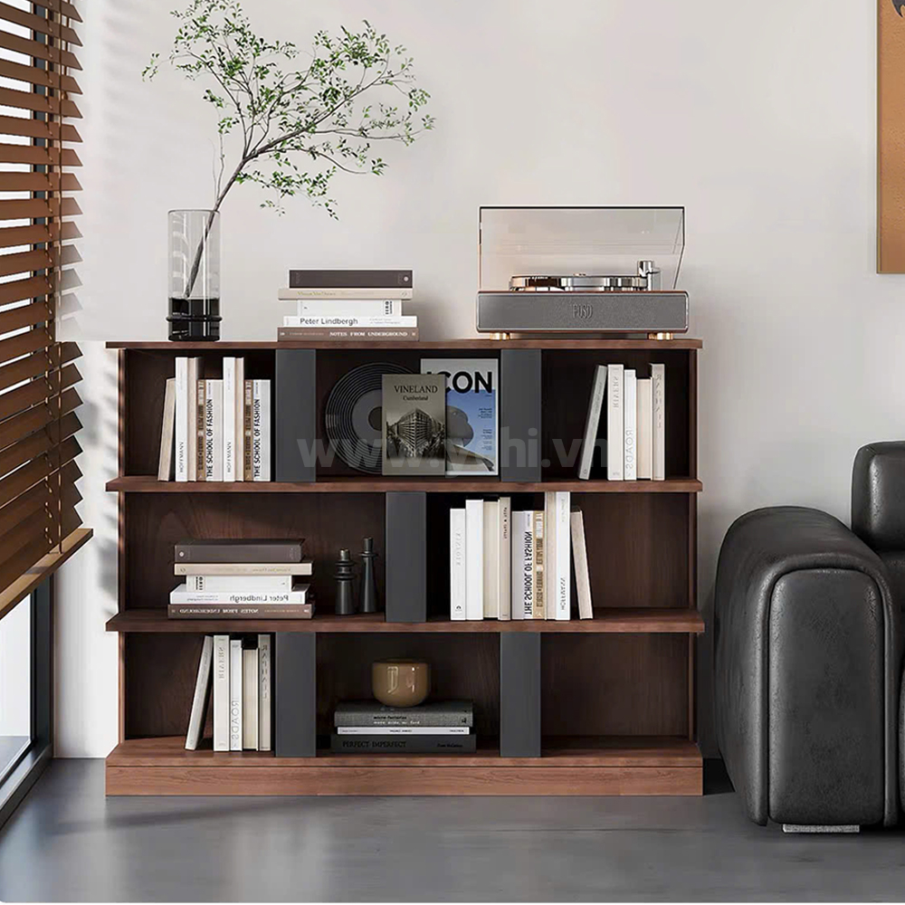 Được làm từ chất liệu gỗ công nghiệp MDF lõi xanh chống ẩm chất lượng cao, tủ sách đảm bảo khả năng chịu lực tốt, chống cong vênh và mối mọt tuyệt đối theo thời gian. Khung cánh kính viền kim loại mảnh mai kết hợp cùng tông màu nâu gỗ trầm ấm tạo nên một tổng thể hài hòa, phù hợp cho cả phòng làm việc lãnh đạo lẫn không gian phòng khách gia đình. Đây không chỉ là giải pháp lưu trữ thông minh giúp tối ưu diện tích mà còn là món đồ nội thất khẳng định gu thẩm mỹ thượng lưu của gia chủ. Hãy nâng tầm không gian sống và làm việc của bạn với mẫu tủ tài liệu cao cấp dẫn đầu xu hướng thiết kế nội thất mới.