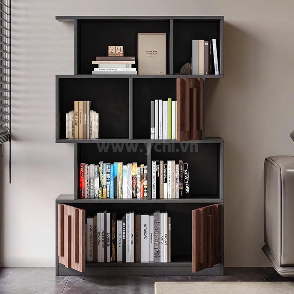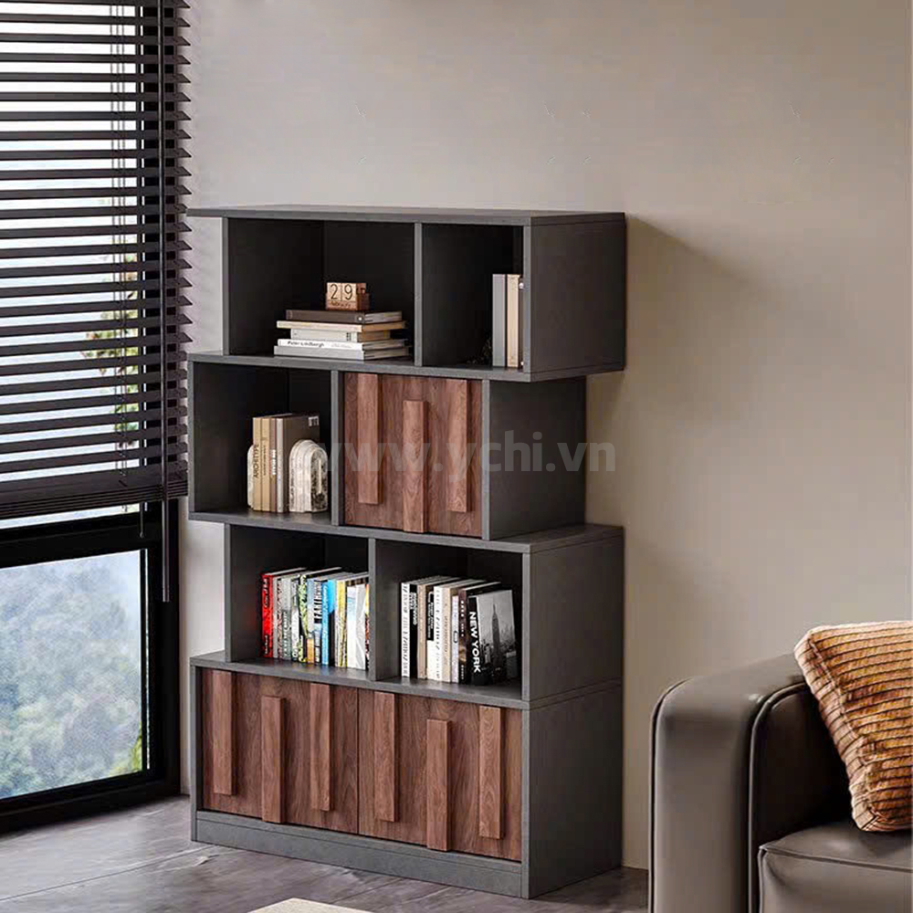 Sở hữu một không gian làm việc đẳng cấp không thể thiếu sự hiện diện của mẫu tủ sách gỗ công nghiệp cao cấp. Tủ Sách Vân Gỗ Tự Nhiên YCHIAM010 gây ấn tượng mạnh mẽ bởi lớp phủ vân gỗ tự nhiên sắc nét, mang lại cảm giác ấm cúng nhưng không kém phần sang trọng. Với thiết kế hiện đại, tủ được chia thành hai phần riêng biệt đầy tinh tế: hệ thống cánh kính phía trên giúp trưng bày những cuốn sách quý và đồ trang trí một cách ngăn nắp, trong khi phần tủ kín bên dưới với các đường lam gỗ trang trí độc đáo tạo điểm nhấn thẩm mỹ khác biệt.